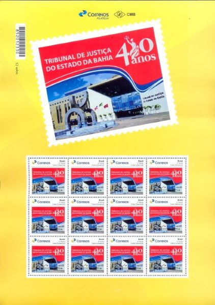 No dia 6 de fevereiro os Correios disponibilizaram para venda o selo personalizado “410 Anos do Tribunal de Justiça do Estado da Bahia”, somente na versão gomada.
