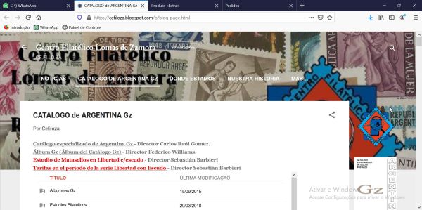 Para quem coleciona os selos da Argentina, uma ótima dica: o Centro Filatélico Lomas de Zamora disponibiliza em seu site, gratuitamente, a captura do álbum e do catálogo daquele país, atualizado até 2019.