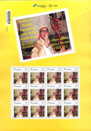 No dia 17 de junho os Correios disponibilizaram para venda o selo personalizado “Jubileu de Pérola Sacerdotal de Dom Pedro Cunha Cruz”, somente na versão gomada.