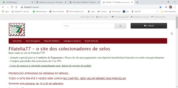 Com atraso, oferecemos a nossa Promoção da Semana do Brasil: todo o site em até 5 vezes sem juros no cartão de crédito, sem valor mínimo das parcelas.