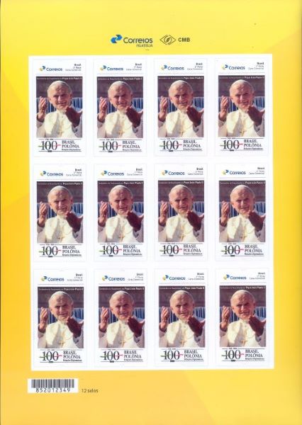 No dia 18 de dezembro os Correios disponibilizaram para venda o selo personalizado “Centenário do Nascimento do Papa João Paulo II – 100 Anos Relações Diplomáticas Brasil – Polônia”, somente na versão autoadesiva.