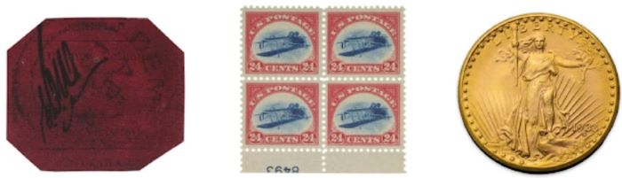 Esta foi uma das três peças milionárias de Weitzman vendidas neste leilão. Além dele, foi arrematada por US$ 4.860.000 uma quadra com a borda da folha e numeração da placa do Jenny invertido, o erro mais famoso da filatelia americana. Tinha pago por ela, também em 2014, US$ 5 milhões.