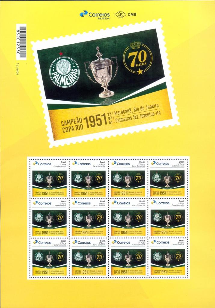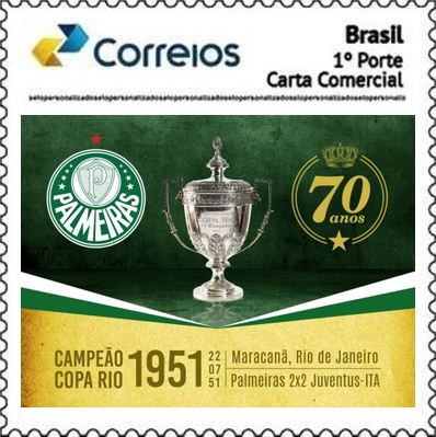 No dia 26 de agosto os Correios disponibilizaram para venda o selo personalizado “Palmeiras 70 Anos do Mundial de 1951”, somente na versão gomada.