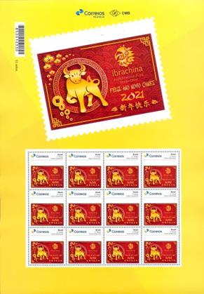 No dia 2 de setembro os Correios disponibilizaram para venda o selo personalizado “Ibrachina – Ano Novo Chinês 2021”, somente na versão gomada.
