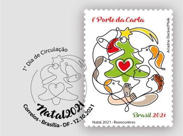 No dia 12 de outubro os Correios lançaram o selo comemorativo “Natal 2021 – Reencontros”, em 28 cidades: Aracaju/SE, Belém/PA, Belo Horizonte/MG, Boa Vista/RR, Brasília/DF, Campo Grande/MS, Cuiabá/MT, Curitiba/PR, Fortaleza/CE, Goiânia/GO, João Pessoa/PB, Macapá/AP, Maceió/AL, Manaus/AM, Natal/RN, Palmas/TO, Porto Alegre/RS, Porto Velho/RO, Recife/PE, Rio Branco/AC, Rio de Janeiro/RJ, Salvador/BA, São José/SC, São José do Rio Preto/SP, São Luís/MA, São Paulo/SP, Teresina/PI e Vitória/ES.
