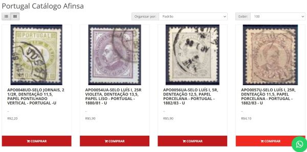 Colocamos na Loja uma boa quantidade de selos de Portugal classificados pelo Catálogo Afinsa.