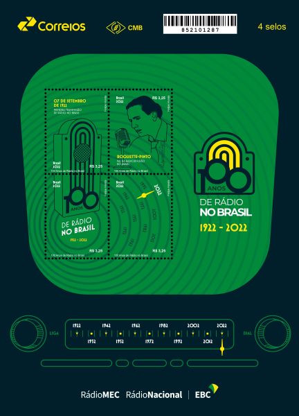 No dia 7 de setembro os Correios lançaram, nas cidades de Brasília/DF e Rio de Janeiro/RJ, o bloco comemorativo “Centenário do Rádio no Brasil”.