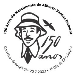 No dia 20 de julho os Correios lançaram, nas cidades de Guarujá/SP, Petrópolis/RJ, Porto Velho/RO, Ribeirão Preto/SP e Santos Dumont/MG o bloco comemorativo “150 Anos do Nascimento de Alberto Santos Dumont”.