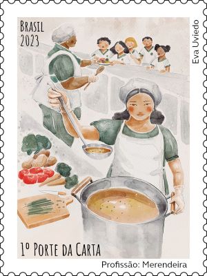 Em 30 de outubro os Correios lançaram, nas cidades de Porto Alegre/RS e Porto Velho/RO, o selo comemorativo “Profissão: Merendeira”.