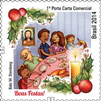 Data do lançamento: 07 de novembro de 2014. Valores faciais: 1º Porte Carta Não Comercial e 1º Porte Carta Comercial. Tiragem: 1.755.000 selos (Troca de Presentes) e 2.625.000 selos (Ceia de Natal). Códigos RHM: C-3390 (Troca de Presentes) e C-3391 (Ceia de Natal).