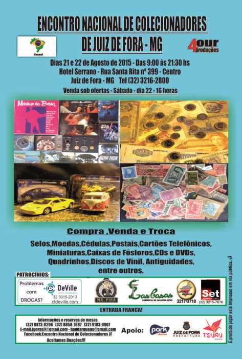 No próximo final de semana (21 e 22 de agosto) acontecerá o Encontro Nacional de Colecionadores de Juiz de Fora.