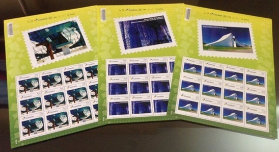 • A Catedral Metropolitana de Brasília – A imagem do selo apresenta o interior da catedral e destaca a imagem de Nossa Senhora da Conceição Aparecida, padroeira de Brasília;