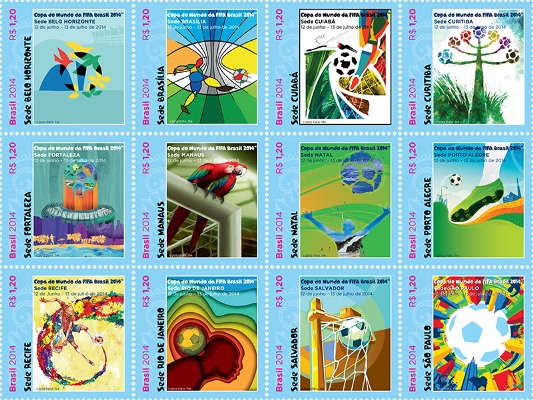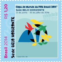 O selo de Belo Horizonte nesta série reflete imagens que decoram o exterior da Igreja de São Francisco de Assis, do conjunto da Pampulha, formando os pentágonos da bola.