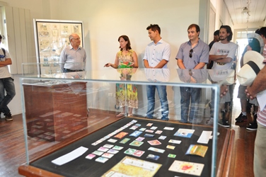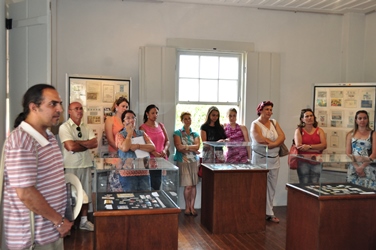 Em seguida, a visita foi permeada com um pouco de história… história do primeiro selo do mundo, história do selo no Brasil, história dos correios no Brasil. De modo dinâmico os alunos conheceram funcionários, produtos, equipamentos e acessórios postais, como as malas utilizadas para a remessa de encomendas vindas do exterior. Disponibilizei, para enriquecimento do momento, alguns itens da minha coleção particular, como selos, blocos, folhinhas, máximos, classificadores, etc.
