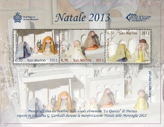 Em 9 de outubro os Correios de São Marino lançaram o bloco comemorativo ao Natal 2013, com valor facial de € 2,10 (três selos de € 0,70).