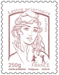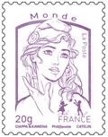 Marianne é o rosto oficial da república francesa nos selos postais desde 1944. A imagem representa os valores nascidos na Revolução Francesa. Ela sempre aparece usando um barrete frígio, símbolo da revolução de 1789.