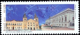 Data do lançamento: 8 de setembro de 2012. Valor facial: R$ 1,20. Tiragem: 418.800 selos. Selo bem elaborado, apresentando vários elementos representativos da cidade de São Luís sem carregar a imagem. O artista Luciomar S. de Jesus, autor dos selos comemorativos aos aniversários de cidades em 2011, tornou-se um expert na criação de selos com esses motivos. NOTA 5.