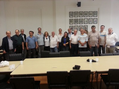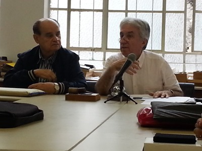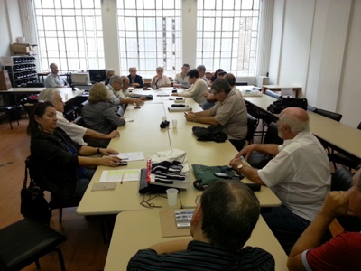 Ao fundo à esquerda, o amigo Comendador Gilberto Fernando Tenor, presidente da Sociedade Numismática Brasileira, que cedeu a sede da entidade para a reunião (nos anos anteriores, era feita na sede da SPP – Sociedade Philatelica Paulista, mas como esta apoiou a chapa Renovação, mudou-se o local)