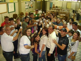 Gláucia Regina R. Vaz (gerente da agência dos Correios de Catanduva), Alamir Barbosa (coordenador), Maria Izabel M. Moura (integrante do clubinho), Vera Lúcia L. Venturin (coordenadora) e Carlos Roberto Favarão (este, dispensa apresentações…)