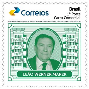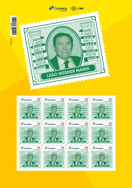 No dia 3 de novembro os Correios disponibilizarão para venda o selo personalizado “Os Grandes Nomes da Filatelia Brasileira – Leão Werner Marek”, somente na versão gomada.
