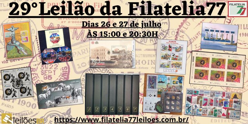 Tem muita coisa boa, com destaque para a grande quantidade de folhas de comemorativos do Brasil em reais, muitas delas com preço de partida igual ou pouco inferior ao facial.