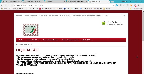 Há pouco mais de um ano implantei na Loja a seção Liquidação, ofertando selos e peças filatélicas do Brasil e de vários países por preços bem atraentes. No caso do Brasil, calculei os preços na base de R$ 0,50 por Unidade Filatélica. Nos selos estrangeiros, R$ 1,00 o euro (cotações dos catálogos Yvert).