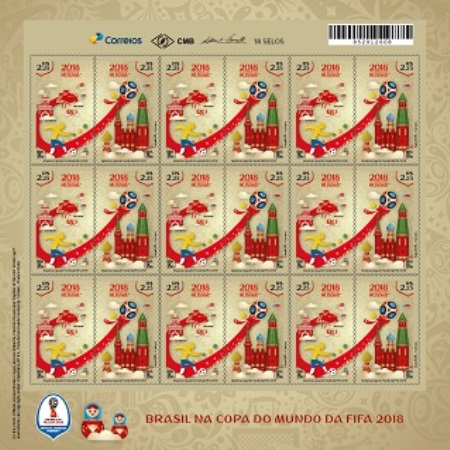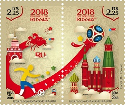 No dia 14 de junho os Correios lançaram a emissão “Brasil na Copa do Mundo da FIFA 2018”, com um se-tenant de dois selos.