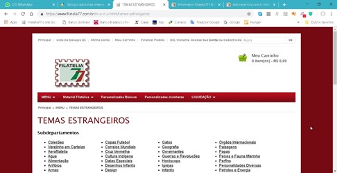 Esqueci de uma informação: os selos acessados através do menu geral, na seção Temas Estrangeiros, também têm o desconto de 80%, pois todos os selos (exceto os que estão na Liquidação), quando inseridos no site, são visualizados tanto pelo país como pelos temas.