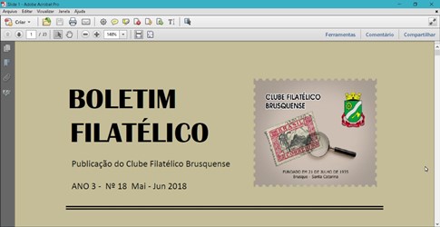 Clicando na imagem abaixo vocês poderão ver o Boletim nº 18 do Clube Filatélico Brusquense, caprichosamente editado pelo amigo Jorge Paulo Krieger Filho, presidente daquela entidade.