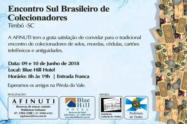 Além disso, desfruta-se da enorme simpatia dos anfitriões, os queridos amigos Sr. Curt Donner e Waldemar Gebauer, dupla que há décadas está à frente da AFINUTI – Associação Filatélica e Numismática Timboense, organizadora do evento.