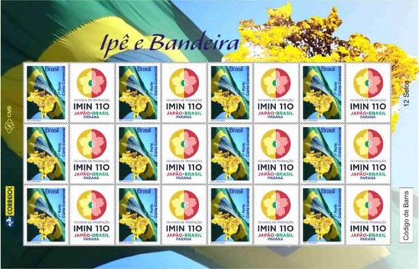 Os Correios também disponibilizaram a venda da mesma imagem no selo personalizado com vinheta Ipê e Bandeira.
