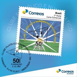 Nova emissão Brasil: Personalizado 50 Anos do Clube Filatélico e Numismático de Uberlândia