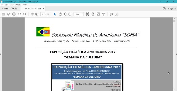 Conforme divulguei algumas vezes, a Exposição Filatélica Americana 2017 – Semana da Cultura foi inaugurada no dia 2 de setembro e o encerramento será amanhã, dia 15. Como não poderia deixar de ser, está sendo um sucesso, graças ao empenho dos amigos da SOFIA – Sociedade Filatélica de Americana.