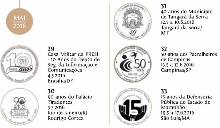 Além das imagens e dos títulos das emissões, tem o código RHM de cada selo, facilitando a preparação de mancolistas. Nos comemorativos, tem também a data de lançamento.