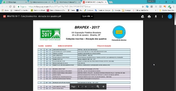 Conforme já amplamente divulgado, no período de 24 a 29 de outubro acontecerá a XIII Exposição Filatélica Brasileira BRAPEX 2017, em Brasília, junto com o mega evento Colecionar 2017.