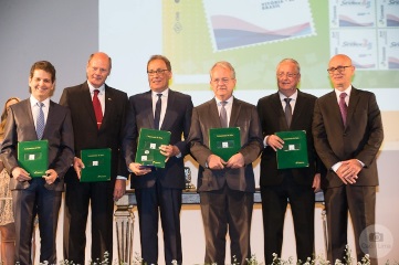 O diretor regional dos Correios no Espírito Santo, Fábio Vieira Cesar, conduziu a cerimônia. Efetuaram a obliteração: o governador em exercício do Espírito Santo, César Colnago; o cônsul da Áustria no Espírito Santo, Wolfgang Theophil Badofszky; o presidente do Sindiex, Marcilio Rodrigues Machado; o presidente da Federação do Comércio de Bens, Serviços e Turismo do Estado do Espírito Santo, José Lino Sepulcri e o presidente do Banco de Desenvolvimento do Espírito Santo, Aroldo Natal Silva Filho.