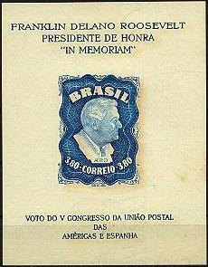 Como exemplo o bloco abaixo, B-12 (Roosevelt), cotado em 110 UFs (dólares) e que estamos vendendo por R$ 55,00. Temos também este bloco com a filigrana no selo e a filigrana Castor inteira, com os mesmos descontos.