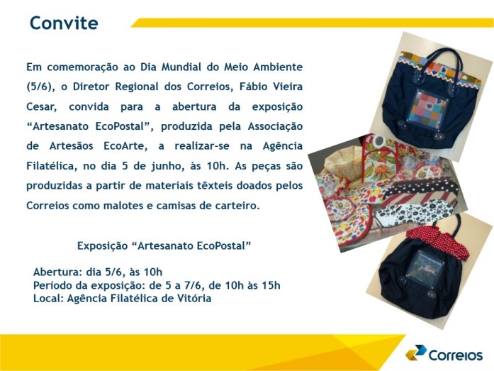 Amigos de Vitória, Vila Velha e região: na próxima semana acontecerá na Agência Filatélica de Vitória a Exposição “Artesanato Ecopostal”.