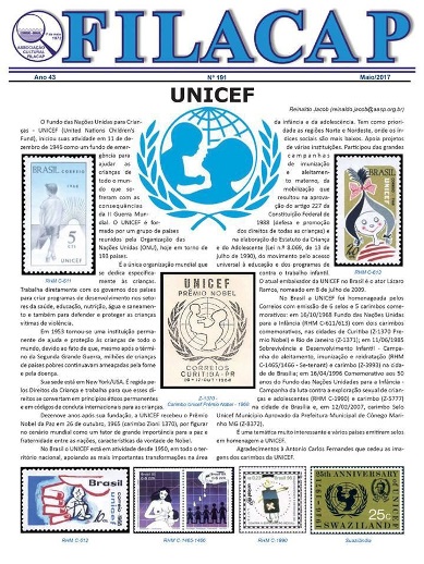 Como artigo de capa UNICEF, de Reinaldo Jacob. Ainda nesta edição: Maximafilia de A a Z – Parte 6 – última (Agnaldo de Souza Gabriel), Centenário do Lions Clube Internacional – Parte 2 (Antonio Carlos Fernandes), Colecionismo: Uma Visão Ampliada (Paulo Novaes), As exposições BRAPEX ao longo dos anos – Parte 1 (Fábio Flosi), A importância das ciências auxiliares para o estudo moderno da história (Bruno Diniz), Loterofilia – A arte de colecionar bilhetes de loteria (Homenagem a Sylvio Luongo no lançamento de seu livro sobre o assunto), Cartofilia – The Beatles, um furacão na música popular (José Carlos Daltozo), Maximafilia – O Farol da Barra – Salvador/BA (Aluisio Queiroga), Os “Primeiros” de Todo o Mundo (do nosso saudoso amigo Angelo Zioni), Novidades Filatélicas do Brasil e do Exterior, agenda de Encontros e Exposições, noticiário geral e dezenas de anúncios de colecionadores interessados em trocar, vender e comprar material de seu interesse. Saiba como assinar solicitando mais informações pelo email: ac.filacap@gmail.com. Apenas R$ 40,00 por 4 edições ou R$80,00 por 8 edições da revista. Garanto que vale a pena, assinem!