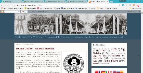 Os amigos da AFNB – Associação Filatélica e Numismática de Brasília, uma das entidades mais atuantes do nosso país, estão comemorando as mais de meio milhão de visitas em seu blog.