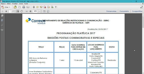 Programação Filatélica 2017