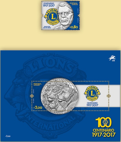 No dia 29 de abril os CTT – Correios de Portugal lançaram a emissão “Centenário do Lions Internacional”, com um selo e um bloco comemorativo.