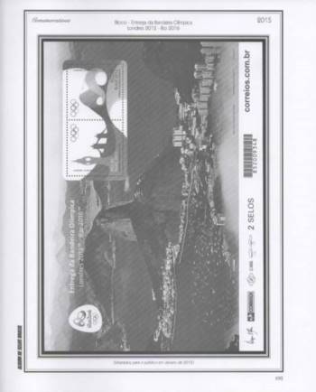 Está inclusa a emissão “Entrega das Bandeiras Olímpica e Paralímpica” (dois blocos e dois trípticos), a qual os Correios oficializaram como emissão de 2012 mas só colocaram à venda em janeiro de 2015 e que, portanto, filatelicamente falando, é um lançamento de 2015.
